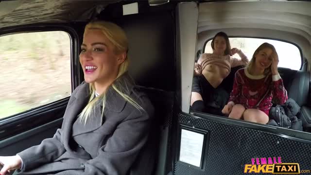 Lesbian taxi threesome wild orgasms
