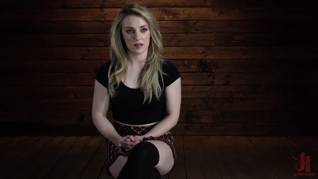 Beautiful blonde Ella Nova bound, dildoed and deepthroated on BBC! Cums hard on two cocks!